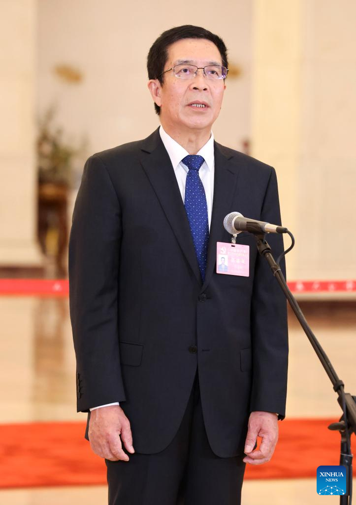 Zhang Liangang, a delegate to the 20th National Congress of the Communist Party of China (CPC), speaks during an interview at the Great Hall of the People in Beijing, capital of China, Oct. 22, 2022. The 20th CPC National Congress concluded on Saturday. (Xinhua/Yin Gang)