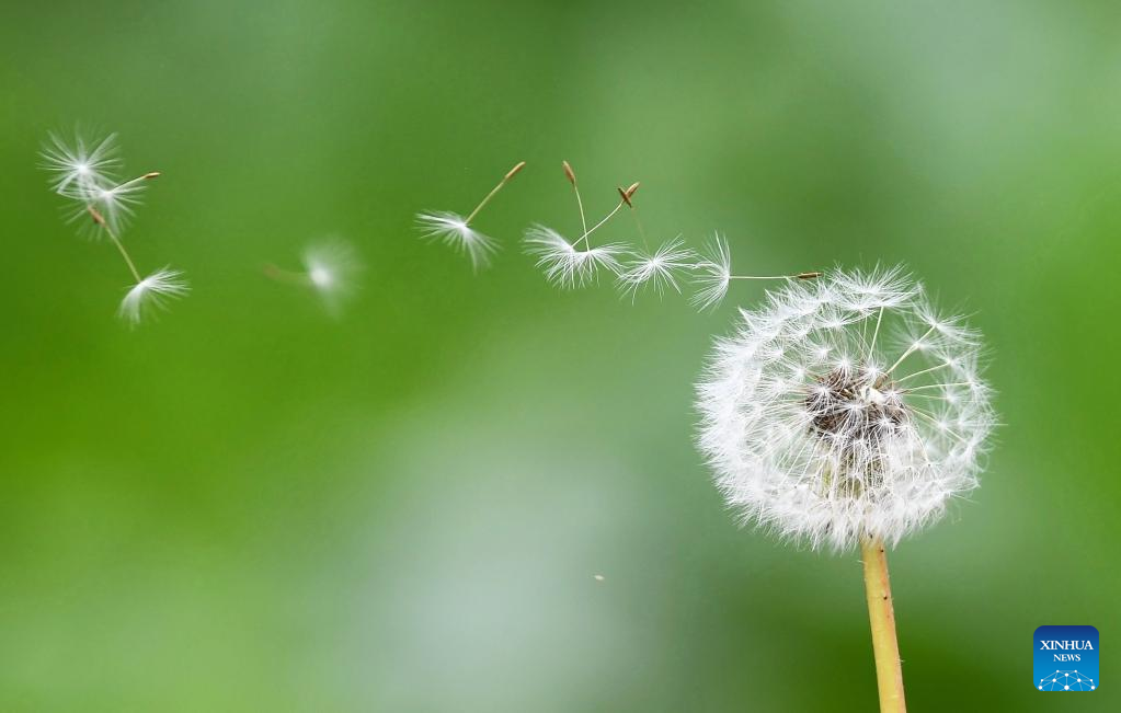 This photo taken on Oct. 14, 2022 shows a dandelion in Xigang Town, Tengzhou City of east China's Shandong Province. First Frost, also known as Shuangjiang, is one of the 24 solar terms of the Chinese lunar calendar and will fall on Oct. 23 this year. (Photo by Li Zhijun/Xinhua)