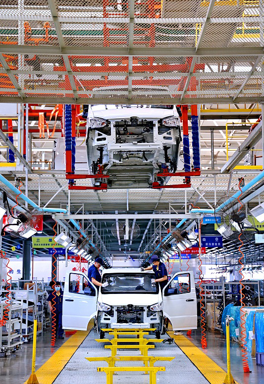 A new energy car is assembled in a factory in Ganzhou, Jiangxi province, this month. ZHU HAIPENG/FOR CHINA DAILY