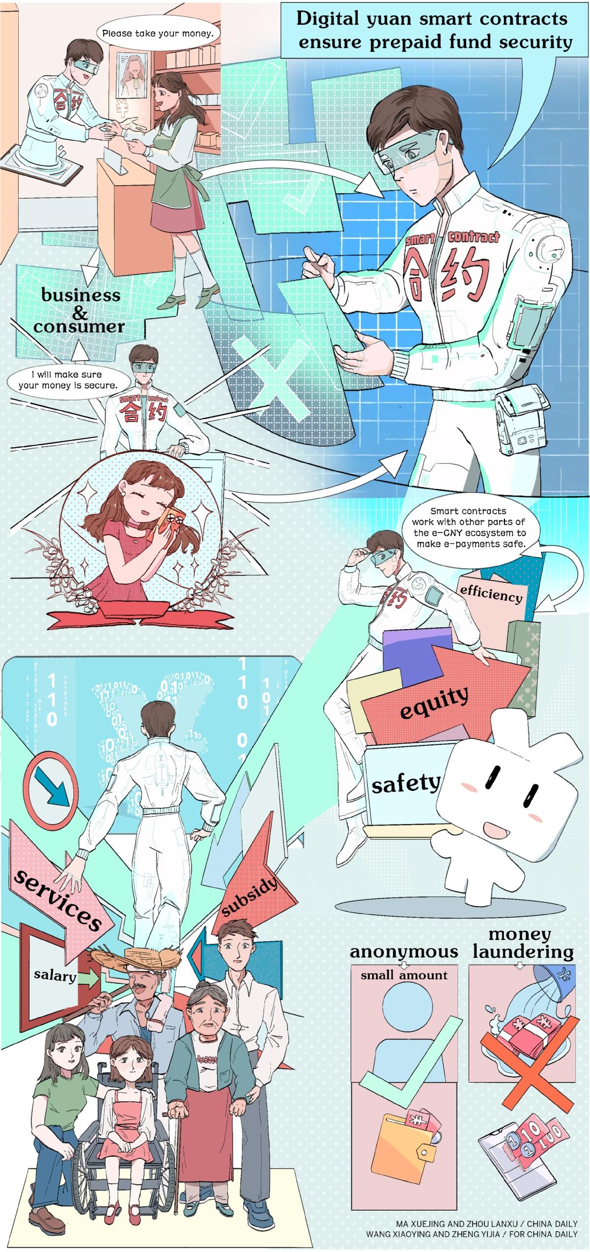 Experts said the prepaid fund management system demonstrates the great potential of digital yuan applications — especially those based on smart contracts — to reduce transaction costs, protect consumer rights and boost the efficiency of economic activities.