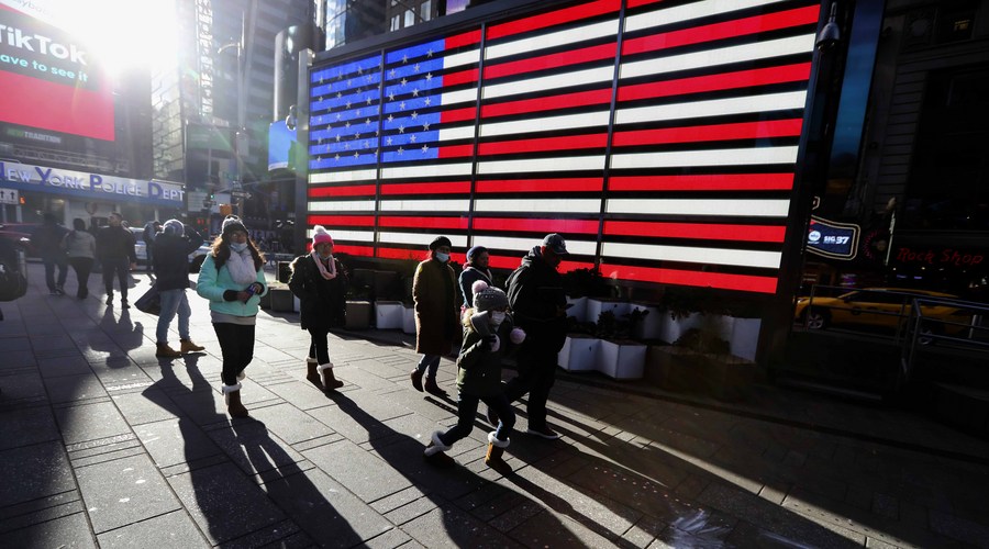 People walk on Times Square in New York, the United States, Nov 23, 2021. [Photo/Xinhua]