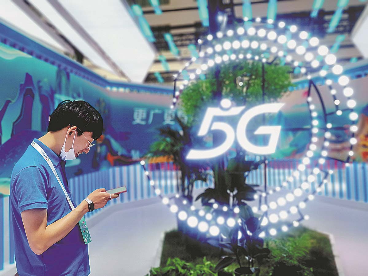 An exhibitor is seen at the 2022 World 5G Convention in Harbin, Heilongjiang province. [Photo provided to China Daily]