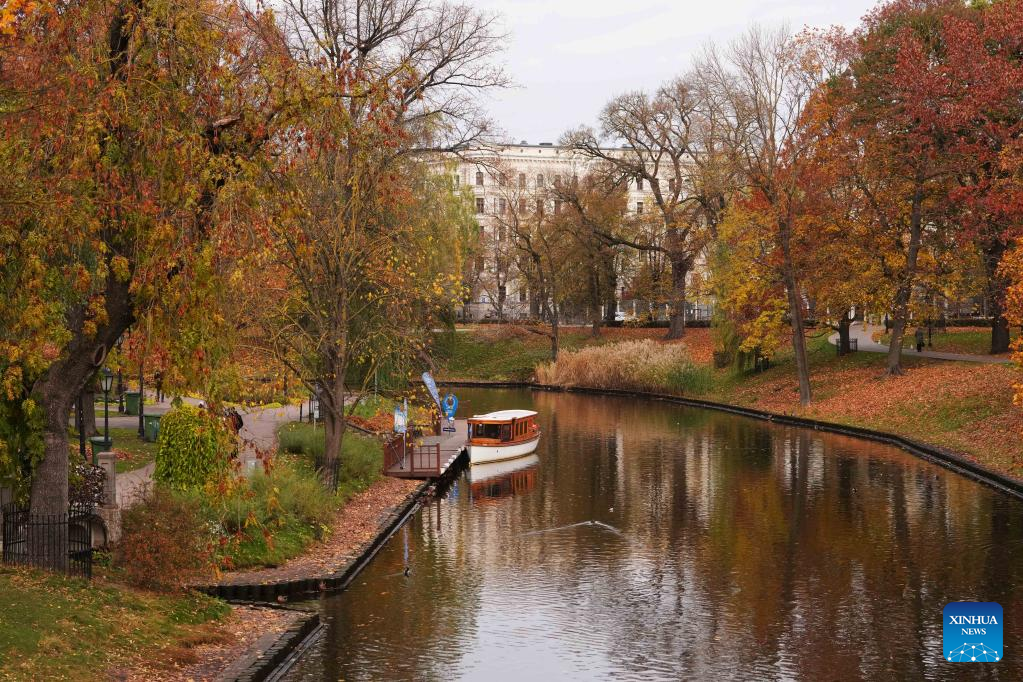 This photo taken on Oct. 24, 2022 shows the autumn scenery in Riga, Latvia. (Photo by Edijs Palens/Xinhua)