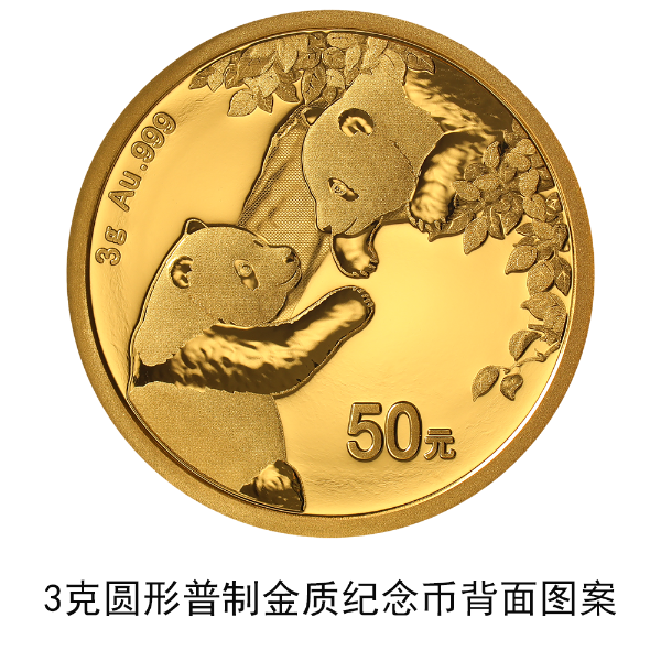 Photo shows the reverse side of the 3-gram gold coin. (Photo/PBOC)