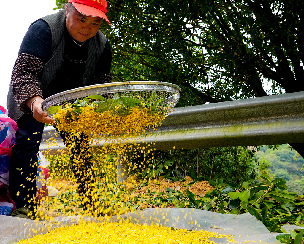 In the city's Lingui district, an osmanthus flower industrial chain has emerged to engage in osmanthus tree planting, osmanthus flower harvesting, and the deep processing of asmanthus flowers.
