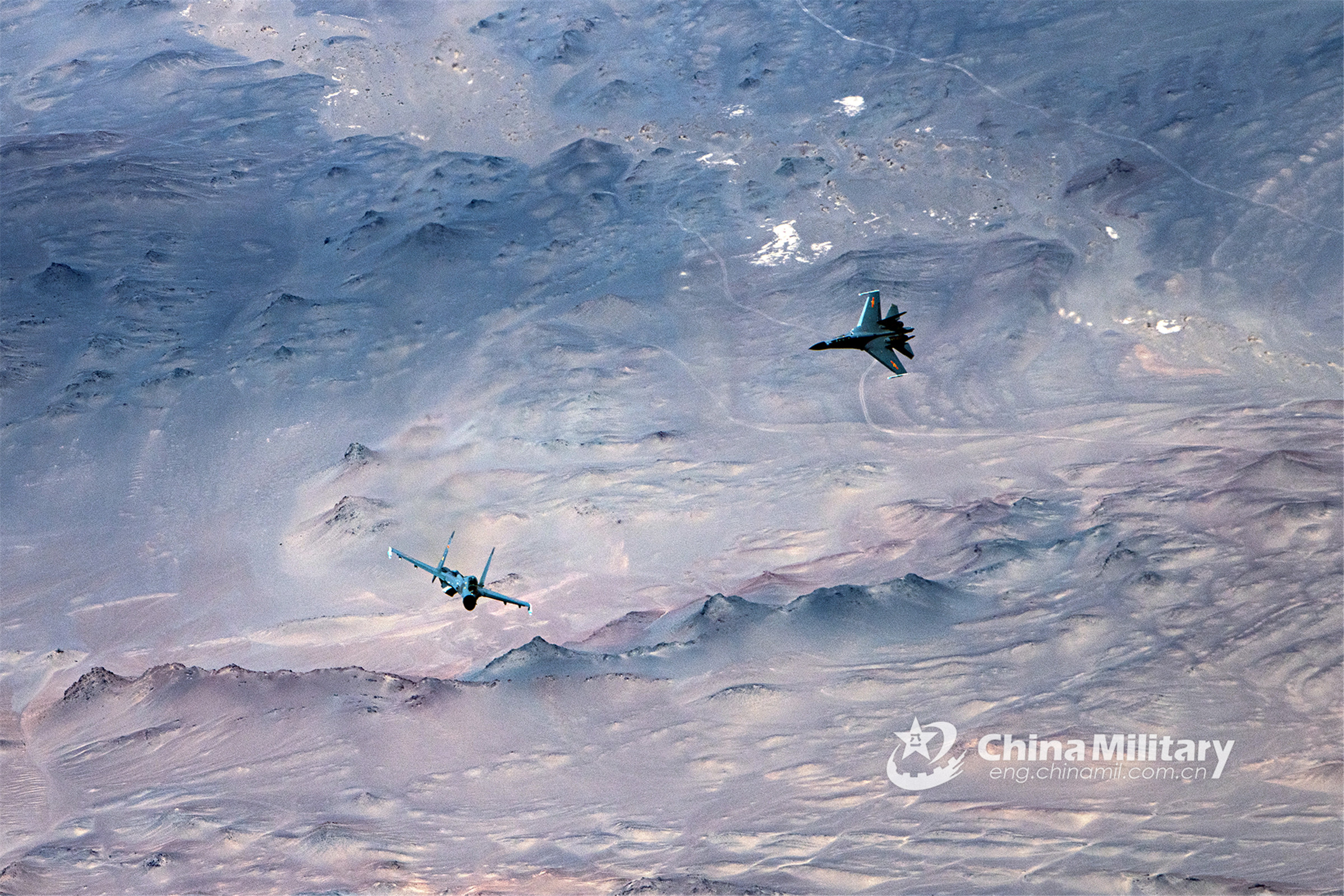 Fighter jets attached to the PLA Air Force adjust their flying formation in responding to the ever-changing circumstances during a flight training exercise. (eng.chinamil.com.cn/Photo by Yu Hongchun)