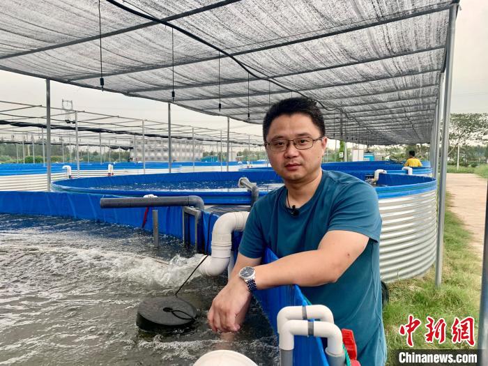 Photo shows Shen Jie at a fish farm. (Photo courtesy of Qiu Dongdong)