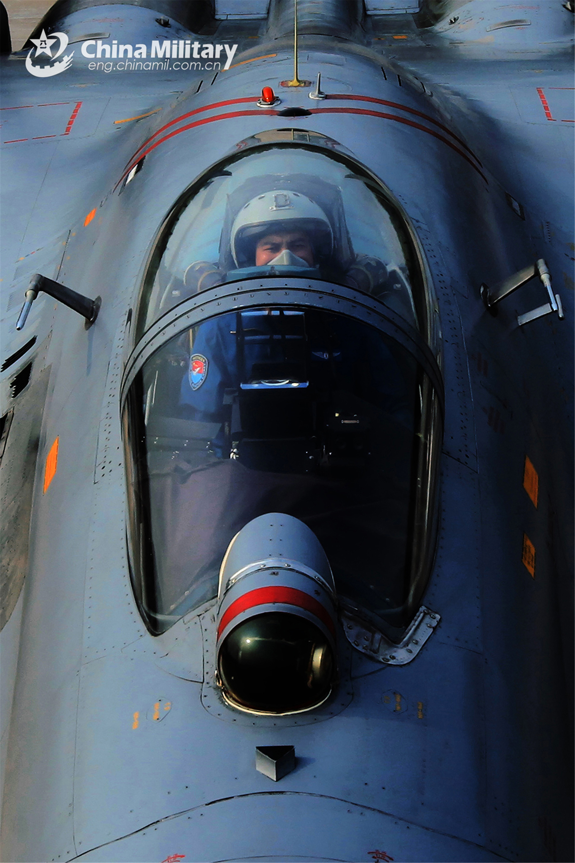 An air force pilot gets situated in the cockpit of his fighter jet during a flight training mission. (eng.chinamil.com.cn/Photo by Lu Bingguang)