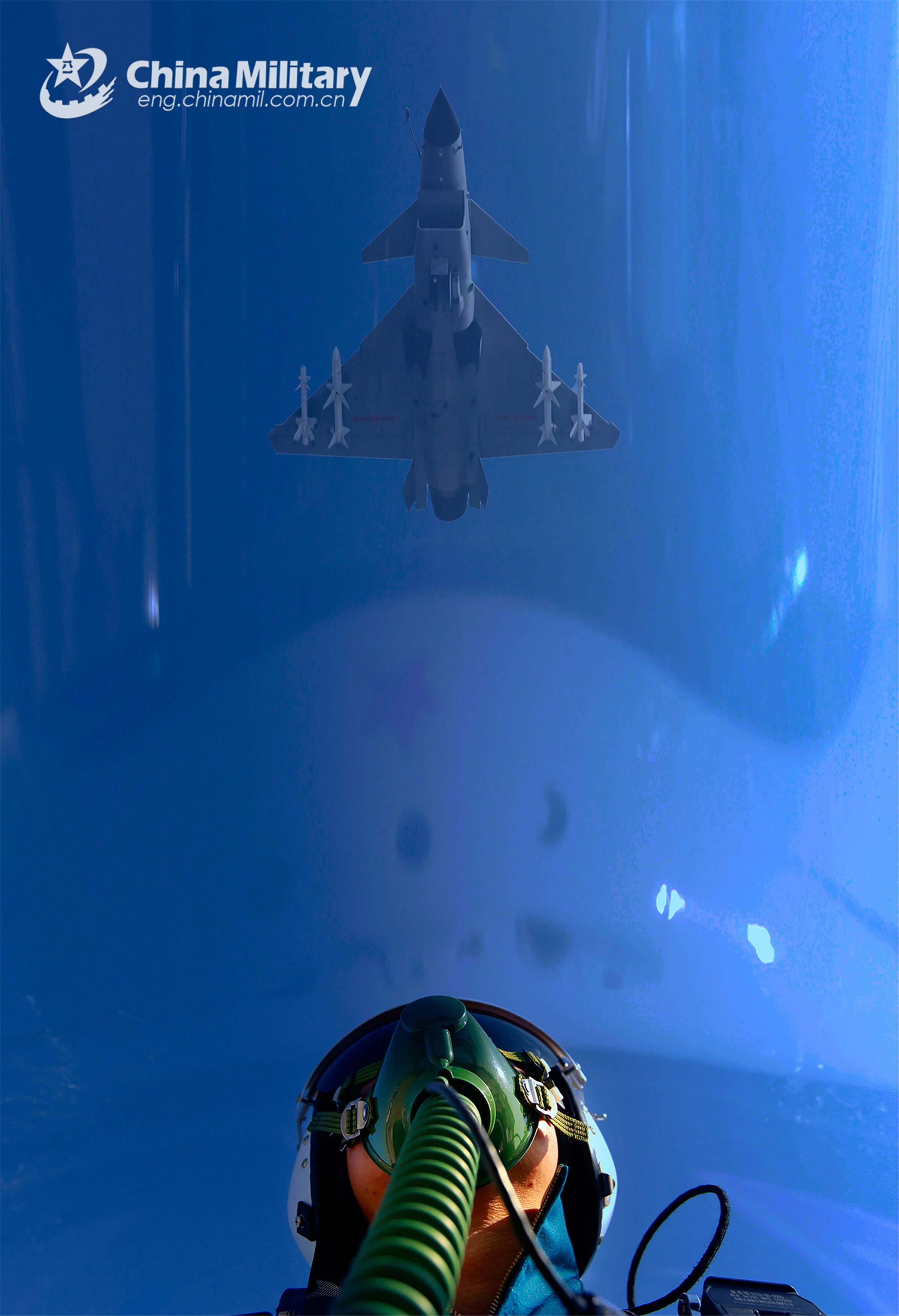 An air force pilot flies his fighter jet in combat formation with the others during a flight training exercise. (eng.chinamil.com.cn/Photo by Lu Bingguang)