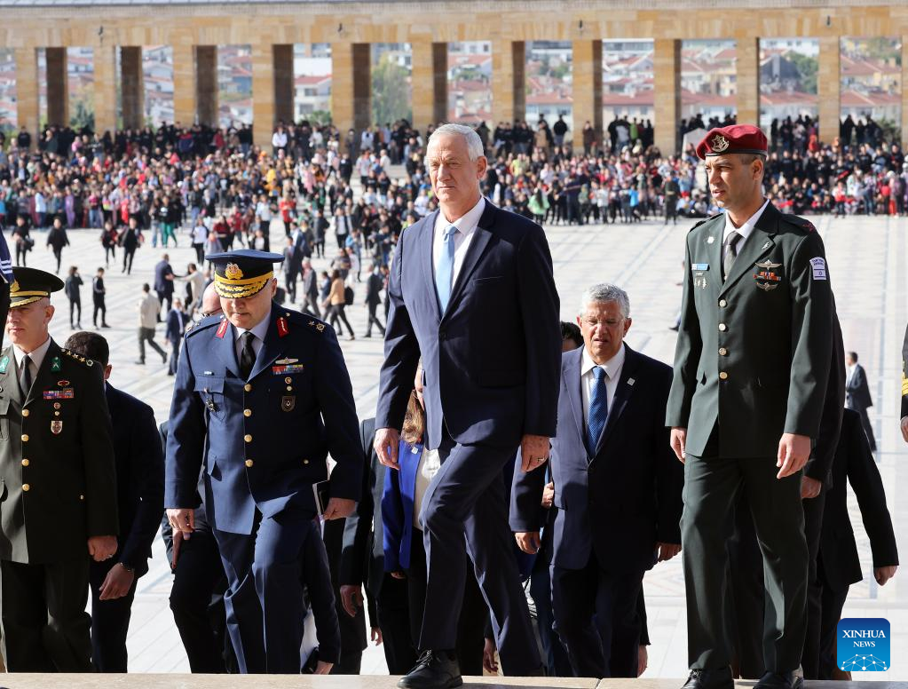 Israeli Defense Minister Benny Gantz visits Anitkabir, the mausoleum of the founder of Turkish Republic Mustafa Kemal Ataturk, in Ankara, Trkiye, on Oct. 27, 2022. Israeli Defense Minister Benny Gantz visited Trkiye on Thursday for the first meeting between the two countries' defense ministers since 2010 after years of strain in bilateral ties. (Photo by Mustafa Kaya/Xinhua)