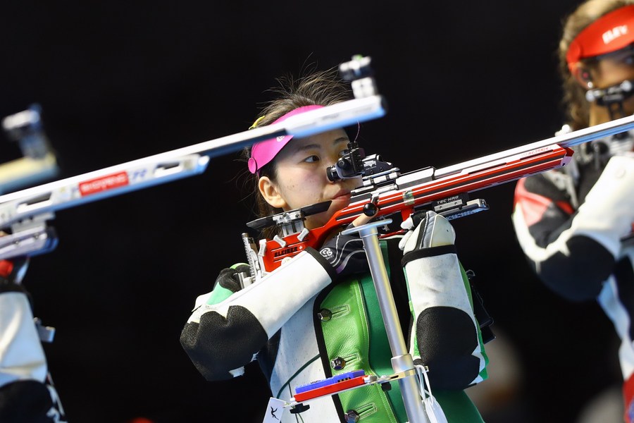 Miao Wanru of China competes won the women's 50m rifle 3 positions at the ISSF World Championship Rifle/Pistol in Cairo, Egypt, Oct. 21, 2022. (Xinhua/Ahmed Gomaa)