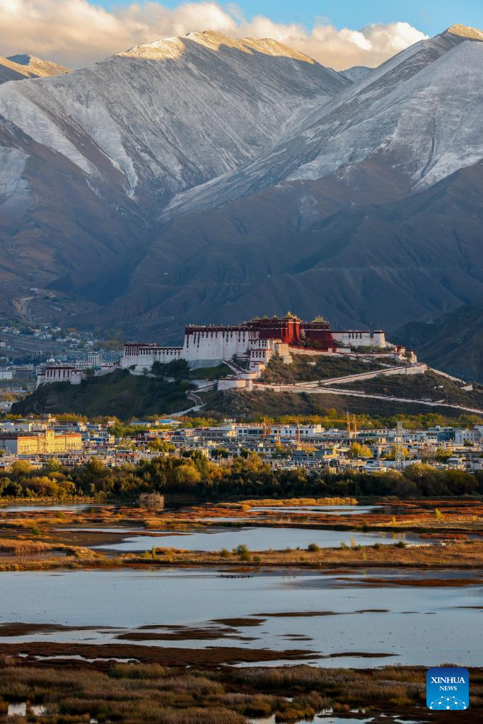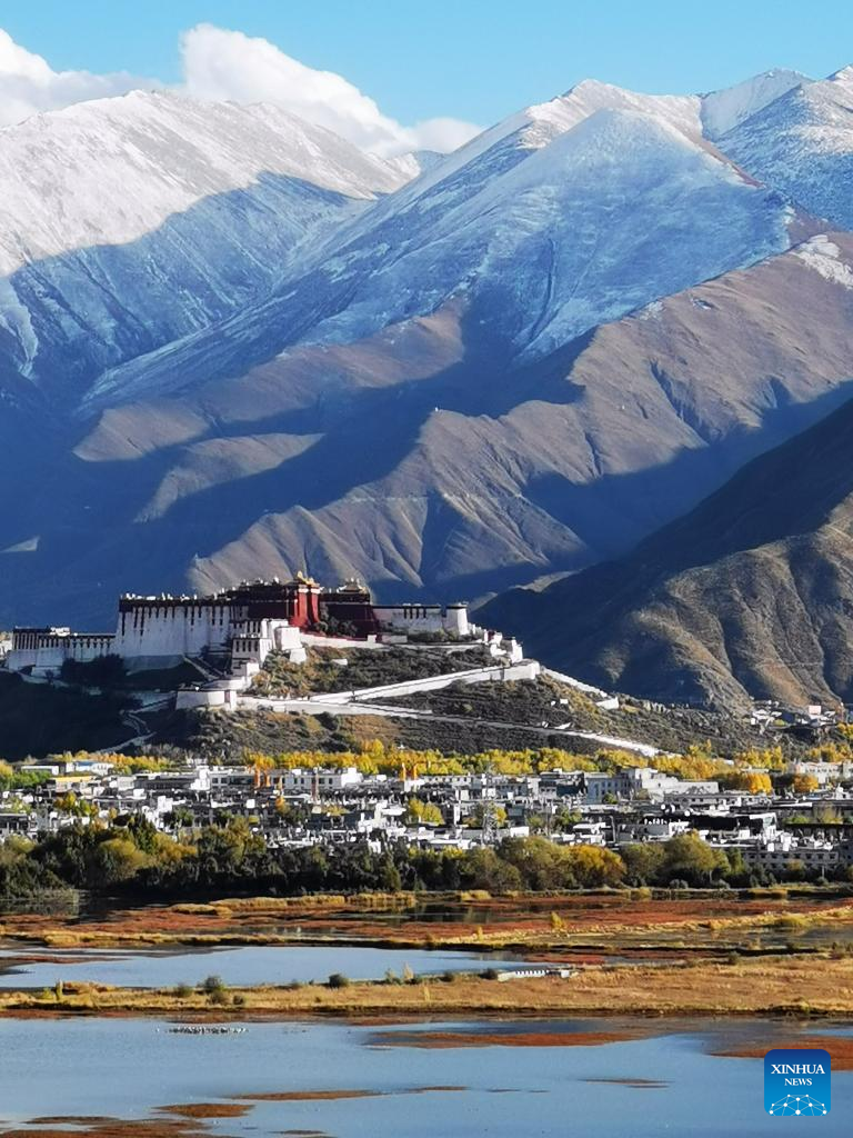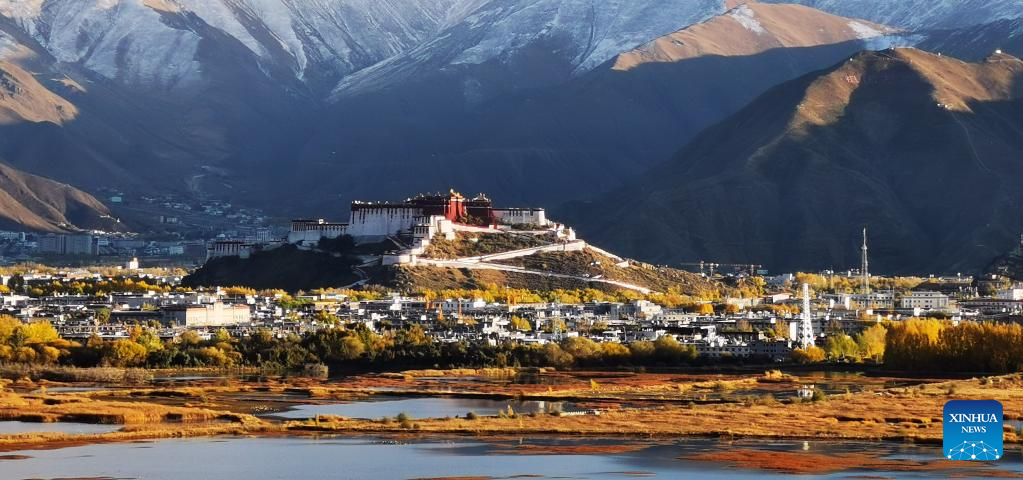 This photo taken on Oct. 28, 2022 shows the autumn view of Potala Palace in Lhasa, southwest China's Tibet Autonomous Region. (Xinhua/Jiang Fan)