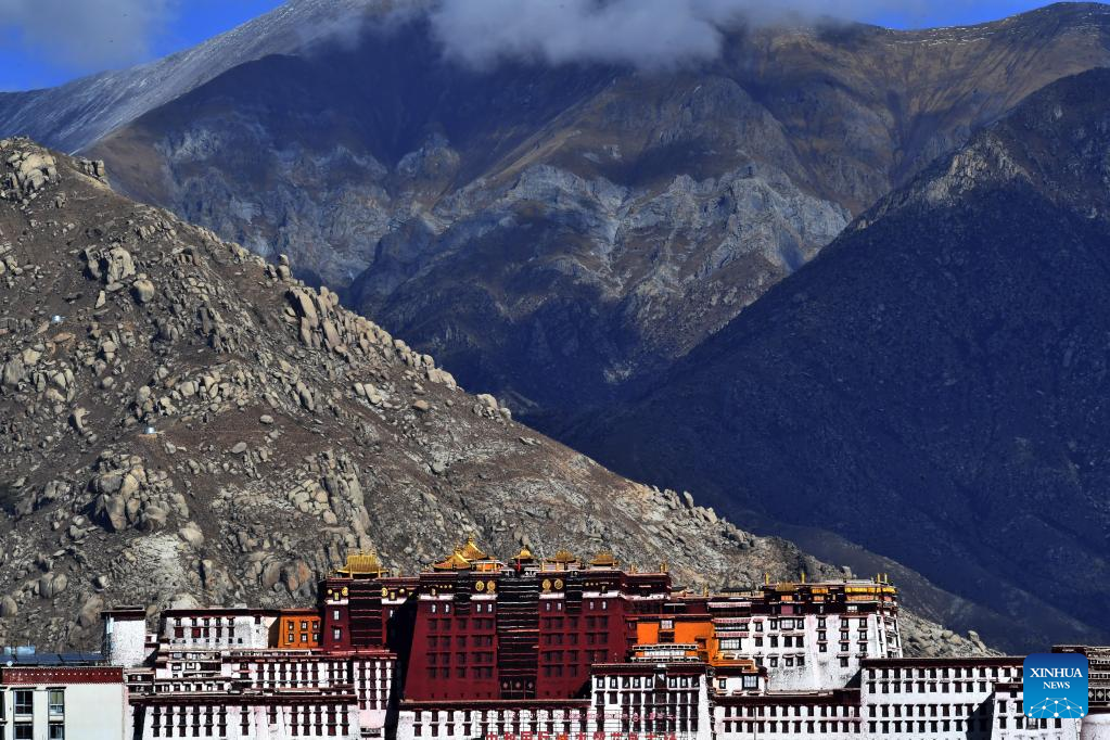 This photo taken on Oct. 25, 2022 shows the autumn view of Potala Palace in Lhasa, southwest China's Tibet Autonomous Region. (Xinhua/Jiang Fan)