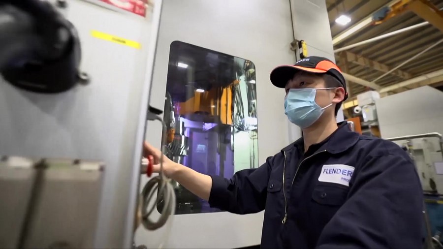 A staff member works at a workshop of Flender Ltd., China, in north China's Tianjin, July 29, 2022. (Xinhua/Yang Zichun)