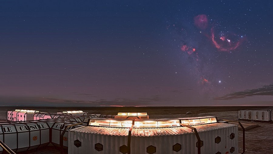 Photo shows a "Mars Campsite" in Lenghu Town in northwest China's Qinghai Province. Chinese scientists are building the Wide Field Survey Telescope in the town, which is known for its Mars-like landscape and climate. (Photo provided to Xinhua)