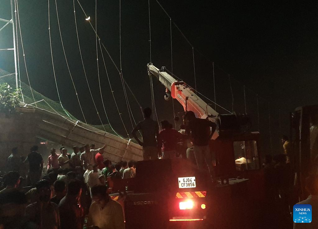 NEW DELHI, Oct. 30 (Xinhua) -- The death toll has risen to 60 in a bridge collapse in India's western state of Gujarat on Sunday evening, said media reports.