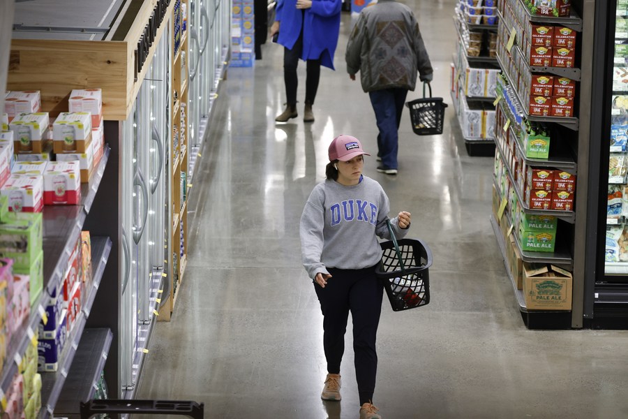 Customers shop at a supermarket in Washington, D.C., the United States, on Oct. 28, 2022. (Photo by Ting Shen/Xinhua)