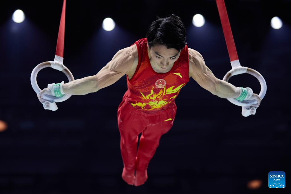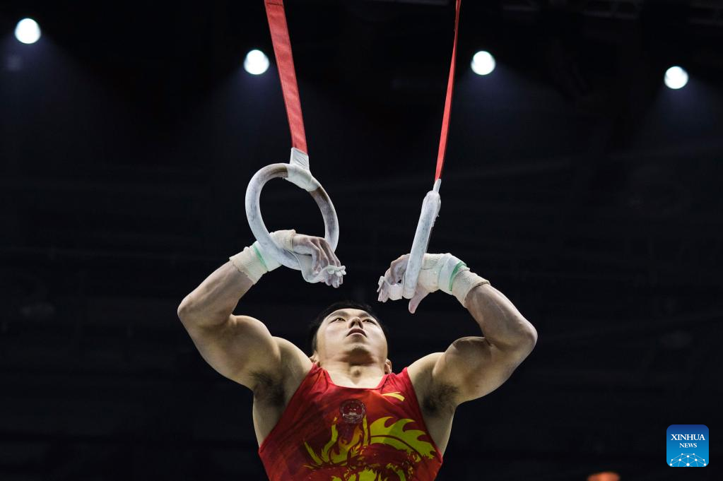 You Hao of China competes in rings event of men's qualifications at the 51st FIG Artistic Gymnastics World Championships in Liverpool, Britain, Oct. 31, 2022. (Xinhua/Meng Dingbo)
