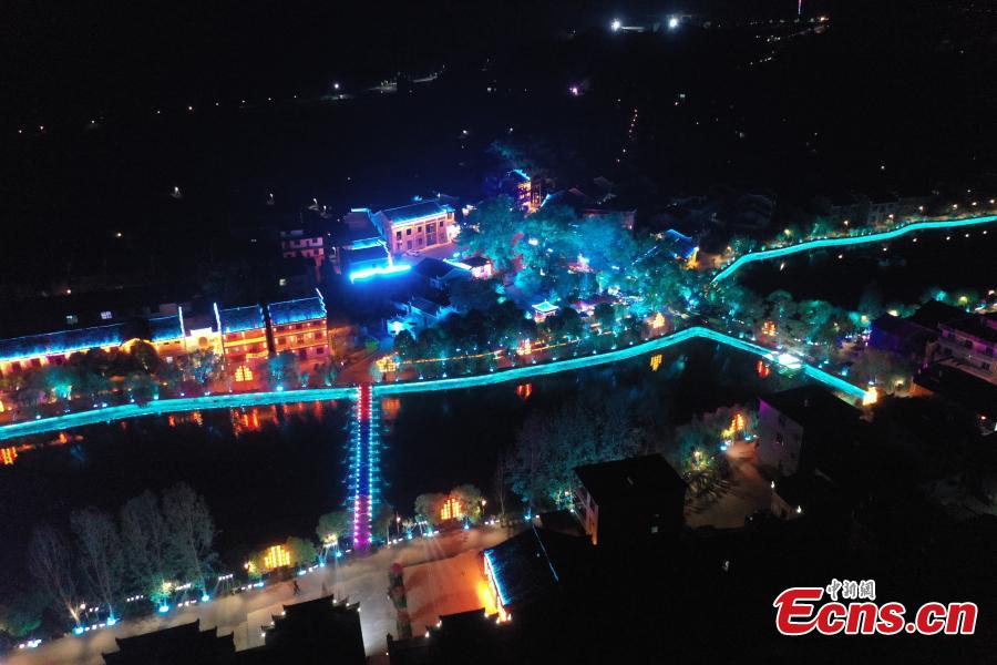 Colorful lights illuminate ancient village in Jiangxi (6)