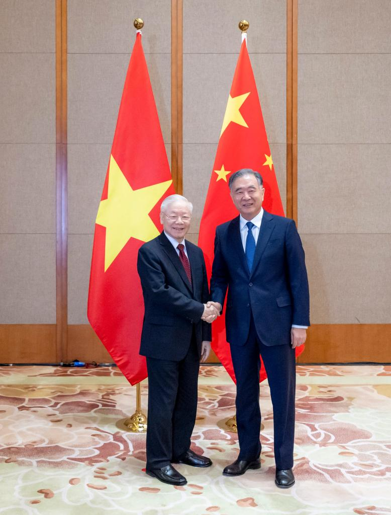 Wang, chairman of the Chinese People's Political Consultative Conference (CPPCC) National Committee, noted that China received Trong's official visit to China right after the 20th National Congress of the Communist Party of China (CPC). He said this shows that China attaches great importance to the special relationship of "comrades and brothers" between China and Vietnam and cherishes the traditional friendship between the two peoples.