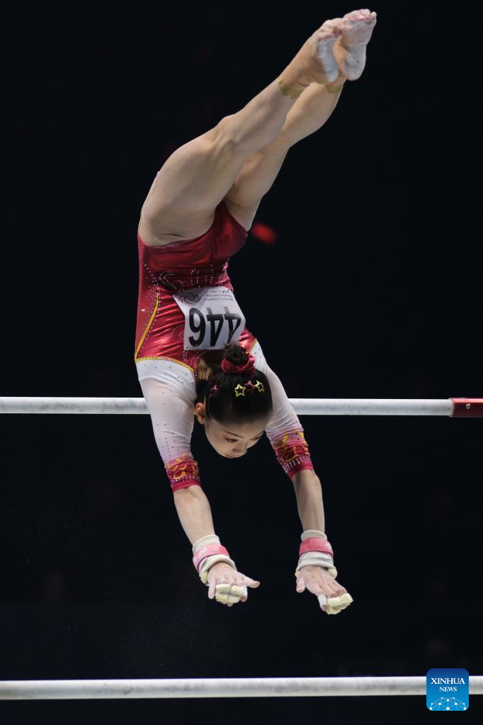 Wei Xiaoyuan of team China competes on the uneven bars of the women's team final at the 51st FIG Artistic Gymnastics World Championships in Liverpool, Britain, Nov. 1, 2022. (Xinhua/Meng Dingbo)