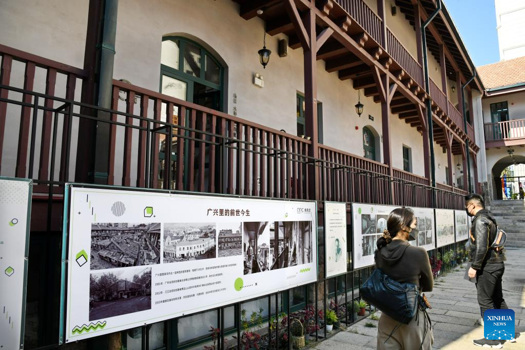 People visit the ancient building Guangxingli in Qingdao, east China's Shandong Province, Oct. 19, 2022. In recent years, the old city area of Qingdao has started protective renovation of its historical and cultural communities, during which ancient buildings have been maintained and new industries and trades have brought vitality to the city. (Xinhua/Li Ziheng)