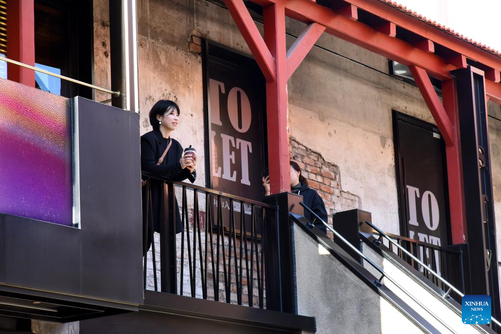 People visit a renovated ancient building at Silverfish ST. in Qingdao, east China's Shandong Province, Nov. 1, 2022. In recent years, the old city area of Qingdao has started protective renovation of its historical and cultural communities, during which ancient buildings have been maintained and new industries and trades have brought vitality to the city. (Xinhua/Li Ziheng)