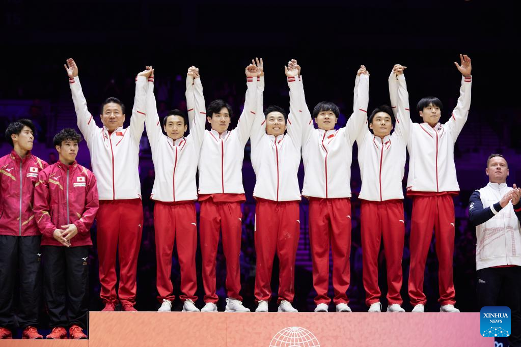 LIVERPOOL, Nov. 2 (Xinhua) -- China's men staged a great show to clinch the team title at the 51st Artistic Gymnastics World Championships here on Wednesday.