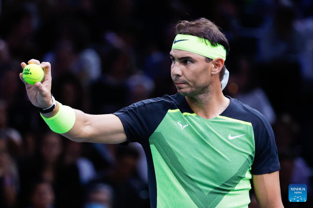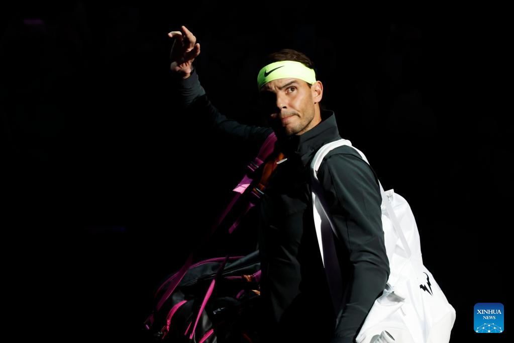 Rafael Nadal of Spain reacts after the men's singles second round match against Tommy Paul of the United States at the Rolex Paris Masters tennis tournament in Paris, France, Nov. 2, 2022. (Photo by Rit Heize/Xinhua)