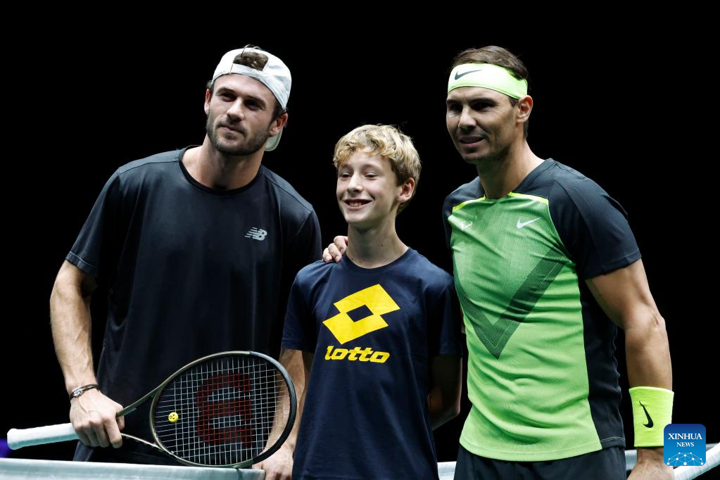 Rafael Nadal (R) of Spain and Tommy Paul (L) of the United States pose before their men's singles second round match at the Rolex Paris Masters tennis tournament in Paris, France, Nov. 2, 2022. (Photo by Rit Heize/Xinhua)