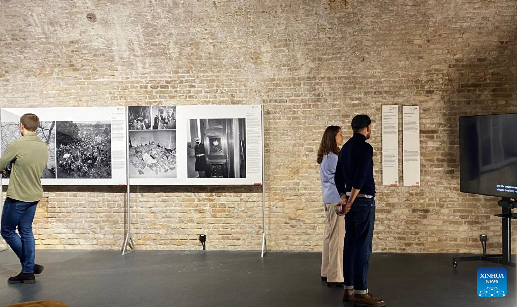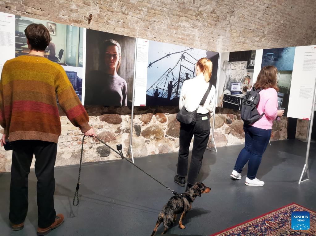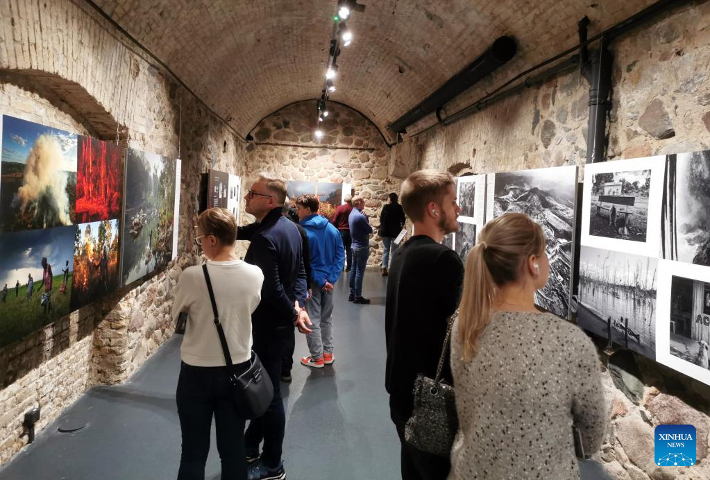 Visitors are seen at the World Press Photo Exhibition 2022 in Vilnius, Lithuania on Nov. 2, 2022. The exhibition, which opened on Oct. 29, showcases the winning photographs from the 65th annual World Press Photo Contest. (Photo by Yang Weihua/Xinhua)