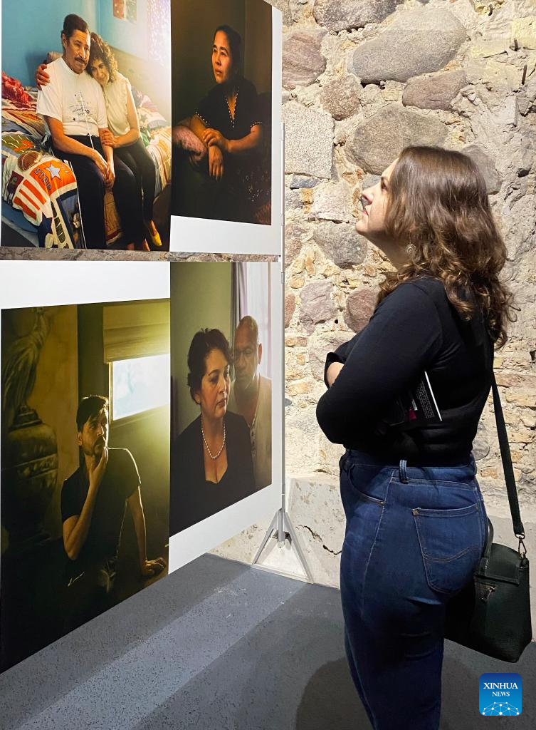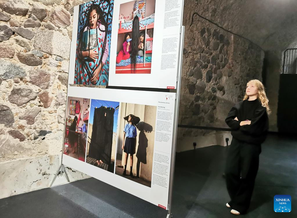 A visitor looks at photographs exhibited at the World Press Photo Exhibition 2022 in Vilnius, Lithuania on Nov. 2, 2022. The exhibition, which opened on Oct. 29, showcases the winning photographs from the 65th annual World Press Photo Contest. (Photo by Yang Weihua/Xinhua)