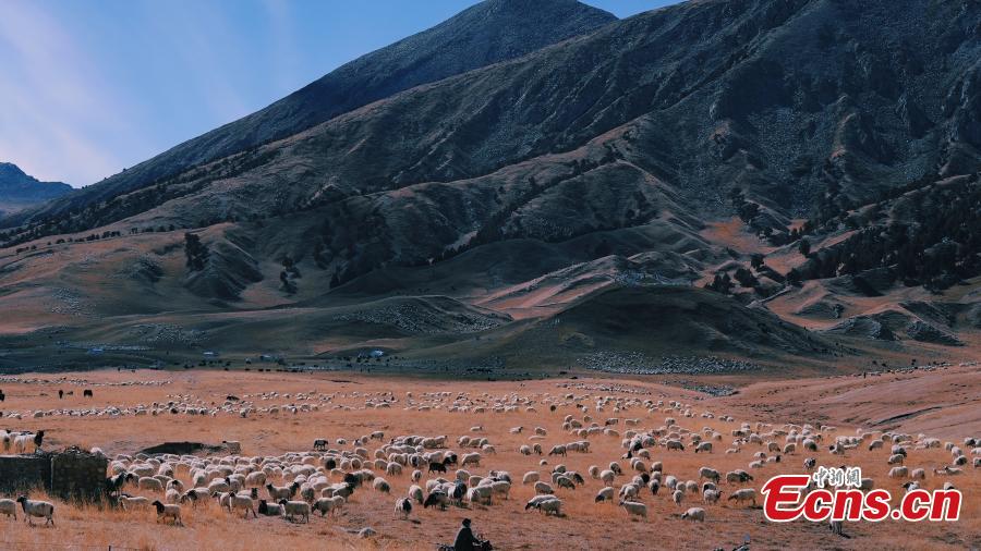 Sheep graze on grassland in Dulan County, Haixi Mongolian-Tibetan autonomous prefecture, northwest China's Qinghai Province, Nov. 2, 2022. (Photo: China News Service/Xian Gong)