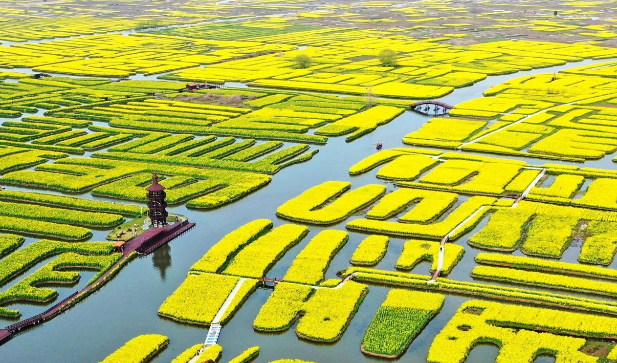 Photo taken on March 26, 2022 shows blossoming rape flowers in the Qianduo scenic area in Xinghua, east China's Jiangsu province. (People's Daily Online/Meng Delong)