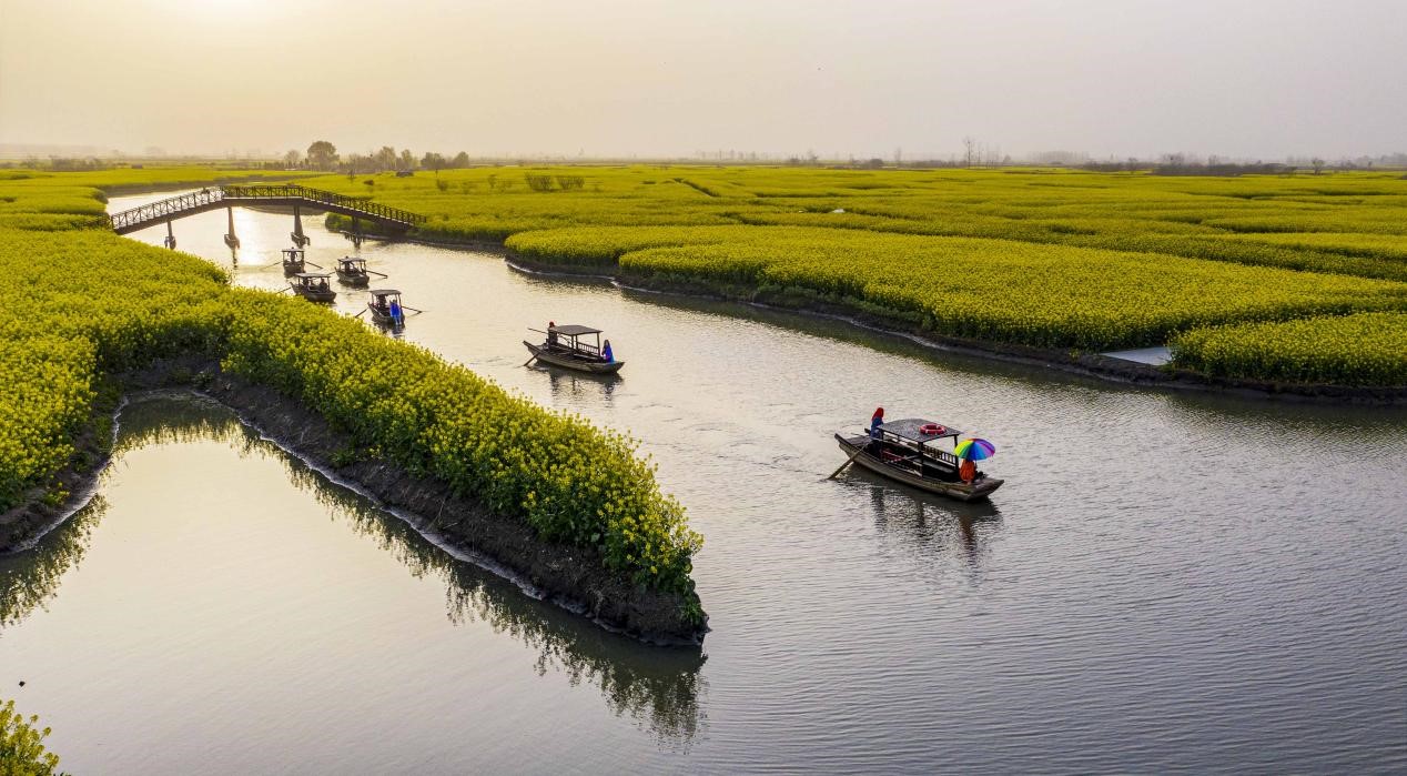 When spring arrives, the blossoming rape flowers on the raised fields and the boats floating on nearby waterways would form a picturesque view. In autumn, high-quality Longxiang taro, a local featured gourmet, is harvested.