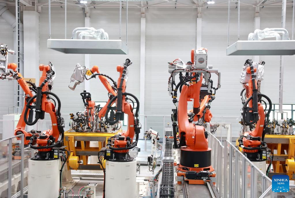 This photo taken on July 4, 2022 shows a workshop of the Volkswagen Anhui MEB (Modular Electric Drive Matrix) plant under construction in east China's Anhui Province. (Xinhua)
