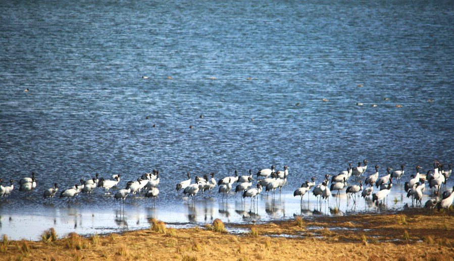 During the past three years, an average of over 1,500 black-necked cranes were spotted arriving at the reserve for wintering, while the numbers of other migratory birds were also on the rise thanks to these local conservation efforts.