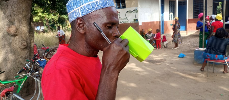 A local villager drinks soybean milk in Morogoro, Tanzania, on June 23, 2022. (China Agricultural University/Handout via Xinhua)