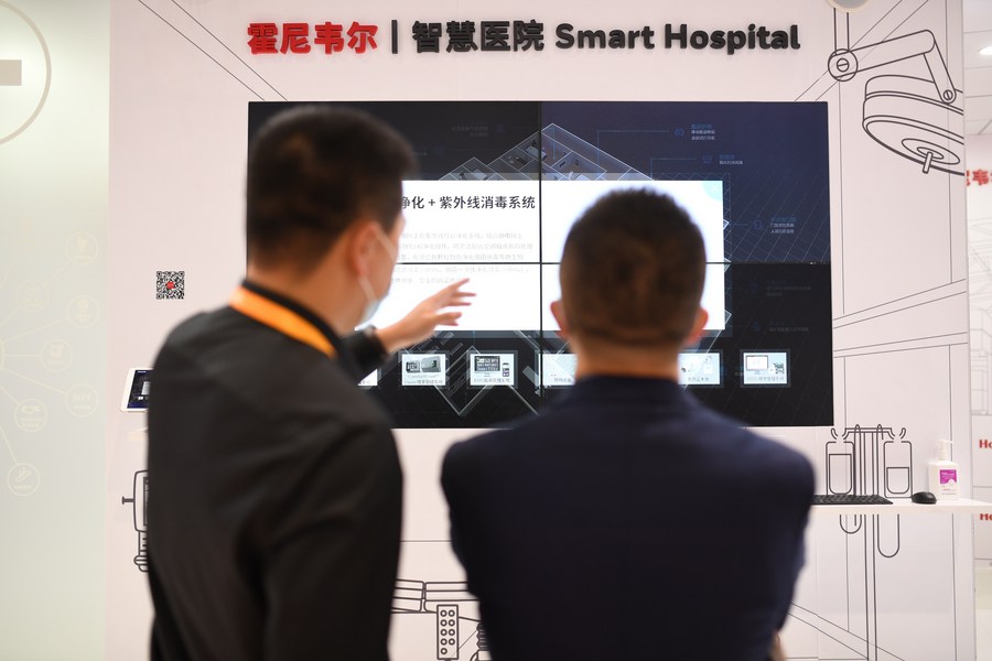 U.S. conglomerate Honeywell displays its smart hospital solutions during the third China International Import Expo (CIIE) in Shanghai, east China, Nov. 10, 2020. (Xinhua/Li Renzi)