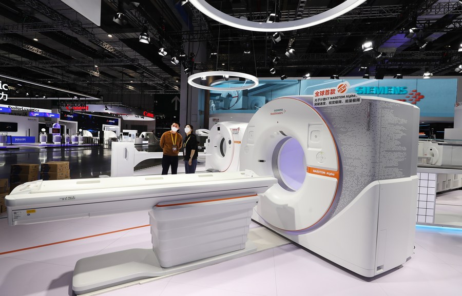 This photo taken on Nov. 2, 2022 shows a medical device of German company Siemens to be displayed in the upcoming fifth China International Import Expo (CIIE) in Shanghai, east China. (Xinhua/Fang Zhe)