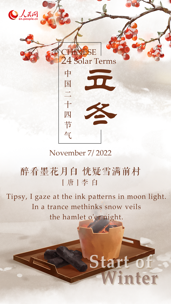 The Start of Winter, or "Lidong" in Chinese, falls on November 7 this year. It is the first solar term of winter, which means winter is coming and crops harvested in autumn should be stored up.