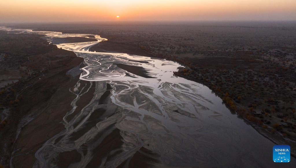 This aerial photo taken on Nov. 10, 2019 shows a view of the Keriya River National Wetland Park in the Taklimakan Desert in northwest China's Xinjiang Uygur Autonomous Region.