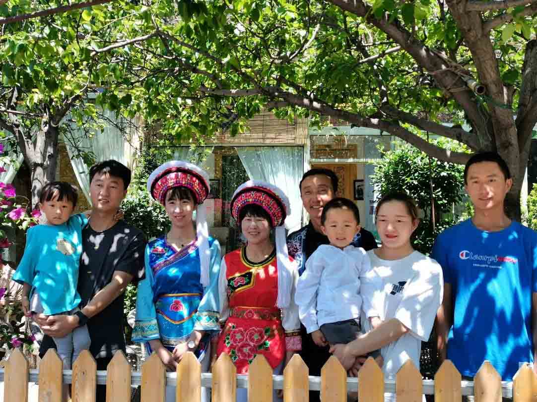 He Licheng and his family smile joyfully in front of their guesthouse in Dali Bai Autonomous Prefecture of South China’s Yunnan Province. (Photo provided by He Licheng)