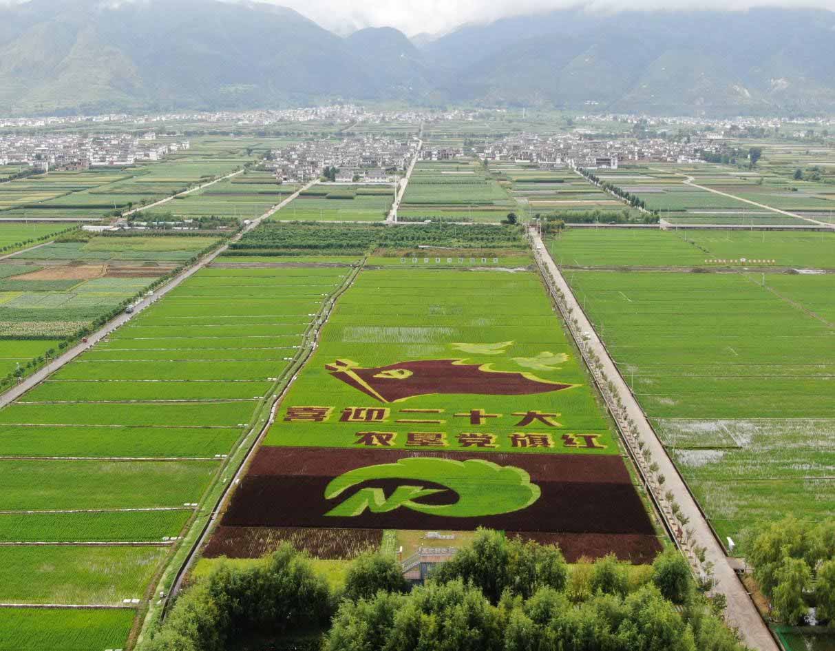 Rice paddy art is seen at the experimental field of Gusheng village in Dali Bai Autonomous Prefecture of South China’s Yunnan Province, July 17, 2022. (Photo/Lyu Qiang)