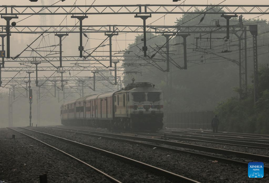 A train arrives at a station amid thick smog in New Delhi, India, Nov. 5, 2022. (Xinhua/Javed Dar)