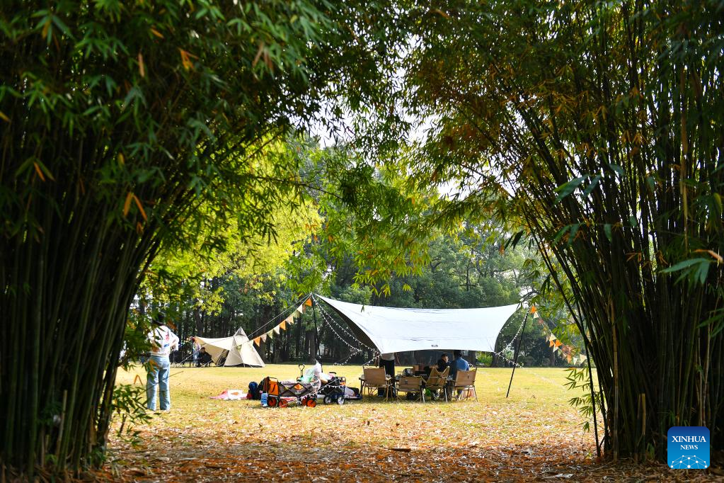 Citizens camp at Donghu Lake scenic area in Wuhan, central China's Hubei Province, Nov. 5, 2022. The 14th Meeting of the Conference of the Contracting Parties to the Ramsar Convention on Wetlands (COP14) kicked off Saturday in China's Wuhan and Switzerland's Geneva.