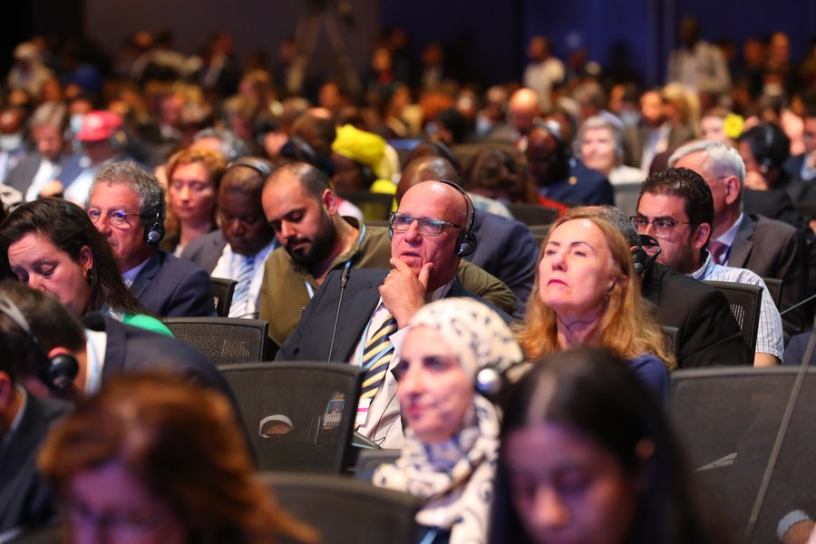 Participants attend the opening ceremony of the 27th session of the Conference of Parties (COP27) to the United Nations Framework Convention on Climate Change, in Sharm El-Sheikh, Egypt, Nov. 6, 2022. (Xinhua/Sui Xiankai)