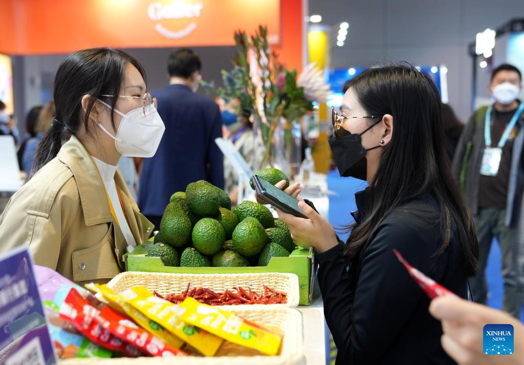 This photo taken on Nov. 7, 2022 shows avocados from Kenya displayed at the food and agricultural products exhibition area of the fifth China International Import Expo (CIIE) in east China's Shanghai. (Xinhua/Liu Ying)