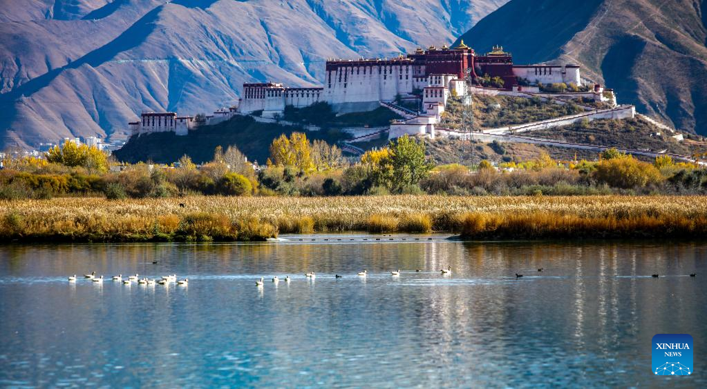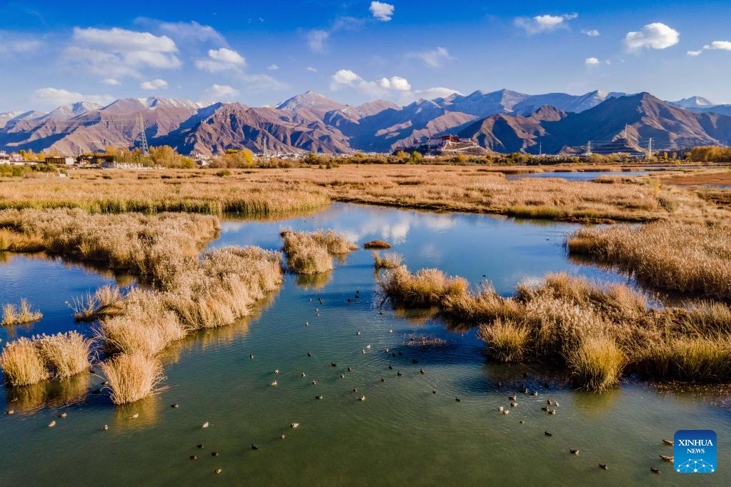 This photo taken on Nov. 5, 2022 shows the Lhalu wetland in Lhasa, southwest China's Tibet Autonomous Region. (Xinhua/Jiang Fan)