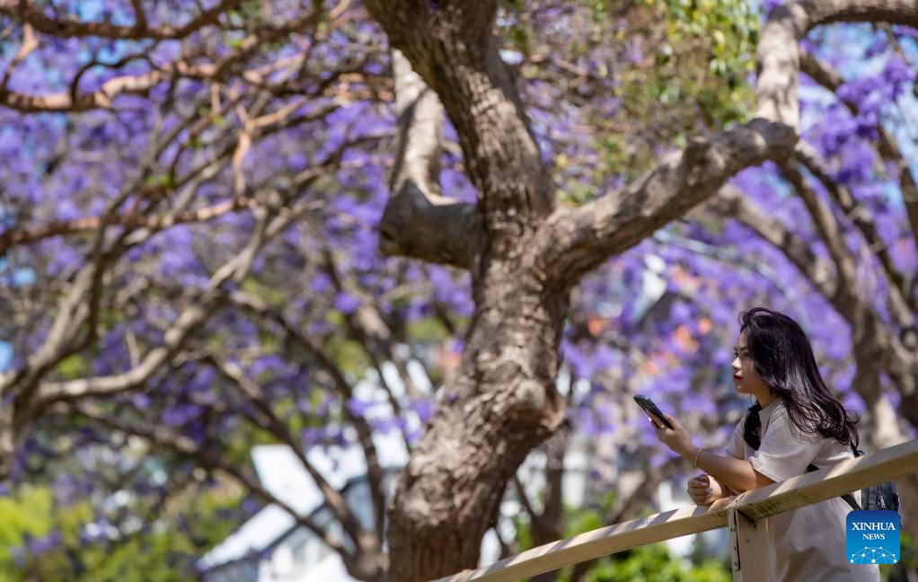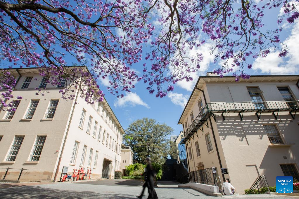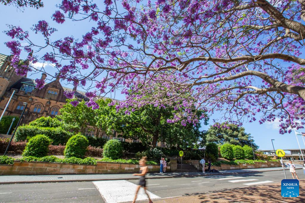 This photo taken on Nov. 8, 2022 shows jacaranda blooms in Sydney, Australia. (Photo by Hu Jingchen/Xinhua)